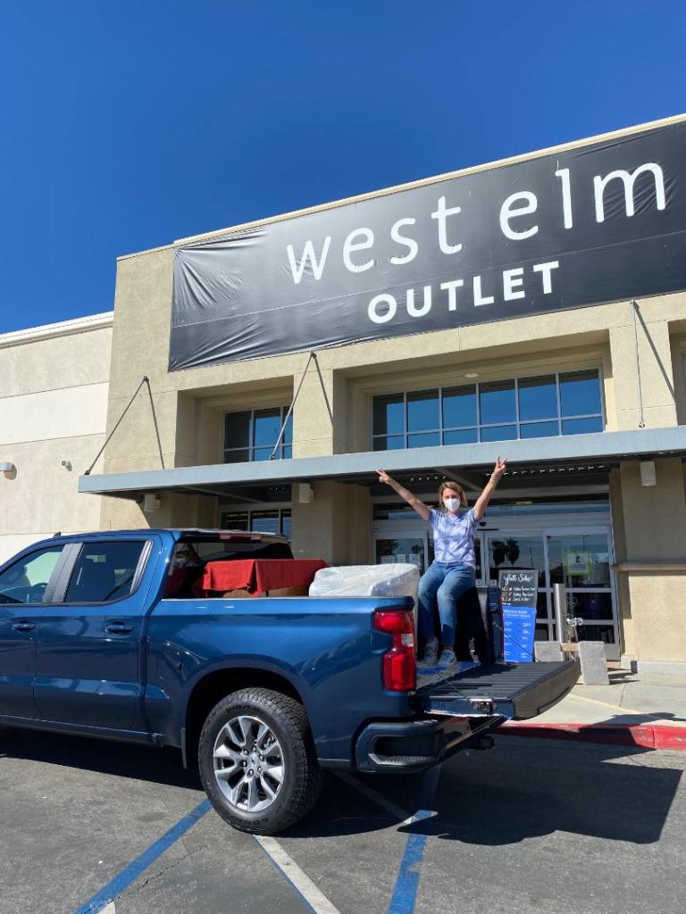 With one click on the keychain, the tailgate popped open and the corner step allowed me to hop in the back to pull the dresser in. Then another stop – a West Elm Outlet furniture pickup since many purchases were waiting for my arrival, wrapped and placed in the back – even 2 swivel chairs and a king bed frame. I was so thankful for this truck space to take home my exciting new pieces.
