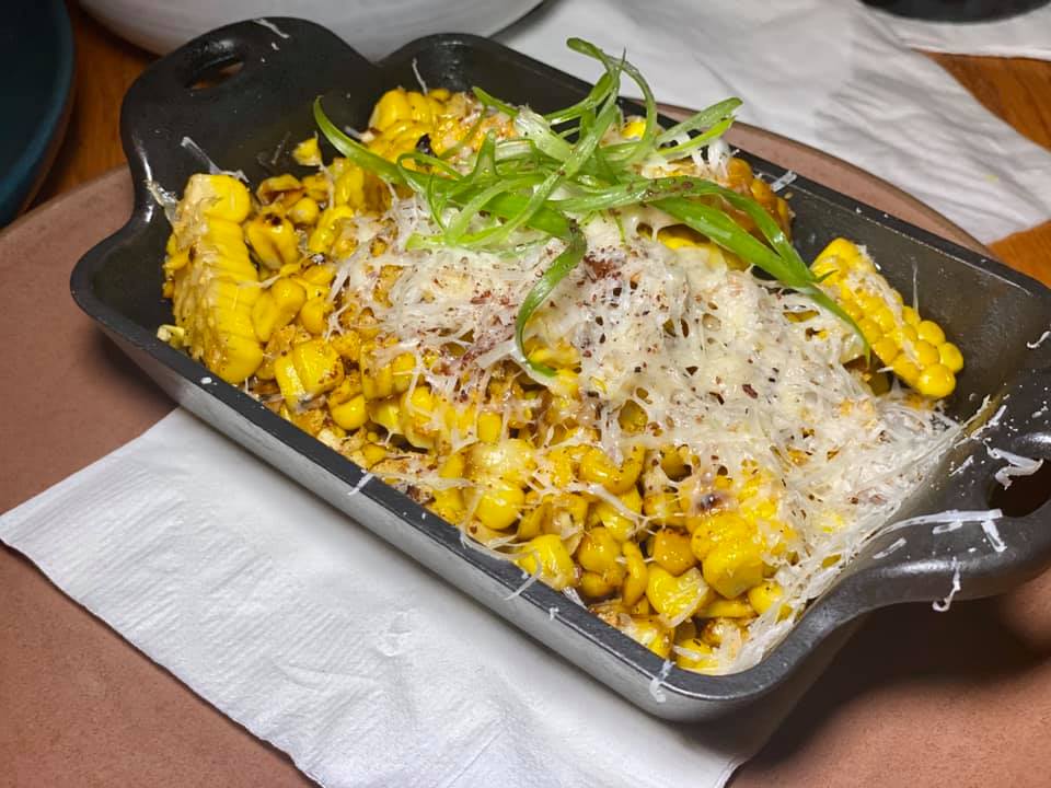 Share a ceviche and the standout Elote where grilled sweet corn is sliced off the cob in a baby skillet pan doused in parmesan cheese, chipotle butter, and chili lime crunch. Hmmmm! You may need to order your own.
