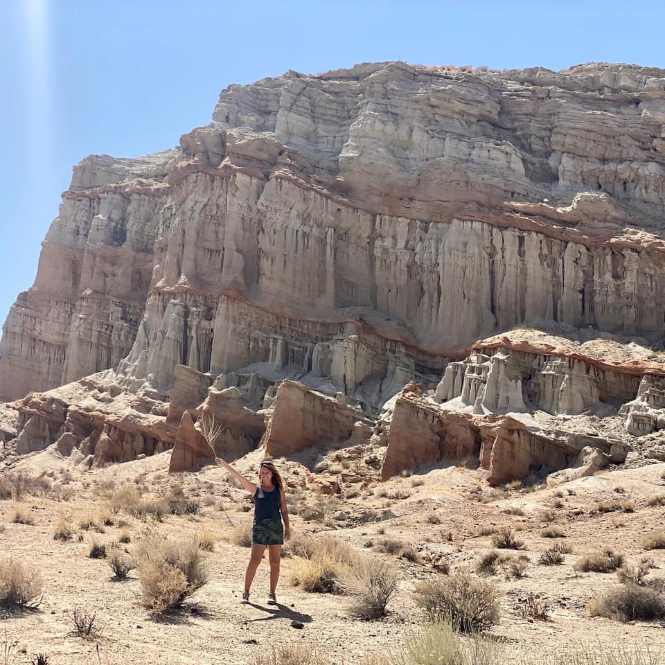 As soon as you escape the LA traffic grind and you’re out of Palmdale, the road seems less daunting. We had the sunroof cranked in the Yukon to feel the fresh air and after a few hours, we pulled over for an hour hike through Red Rock Canyon State Park, an overlooked park with impressive rock formations, scenic desert cliffs, buttes, and Joshua trees. The entire area was once at the bottom of a massive lake ten million years ago. A short loop hike with somewhat of a marked trail takes you up and over the landscape with dramatic shapes and colors where you may peek out of a window rock cave, spot a rock that looks like a camel’s head, and find scurrying lizards with striped tails. Walk along the former riverbed oases too.