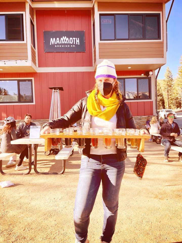 No trip to Mammoth is complete without apres-ski beer tasting flights (seasonal and original) at Mammoth Brewing Co and The Eatery. Savor those microbrew suds with sips of their Epic IPA, a Double Nut Brown, or a fruity hard seltzer, but stay and dine at one of their outdoor picnic tables a la beer garden in view of the mountains. Soak up the alcohol with yummy pub grub like the “Best Dam Burger’ made with ½ pounds of ground brisket and smoked gouda, Crispy Cod Filets and Waffle Fries, and fondue with bread stick-like fries for dipping. They offer root beer on tap too.