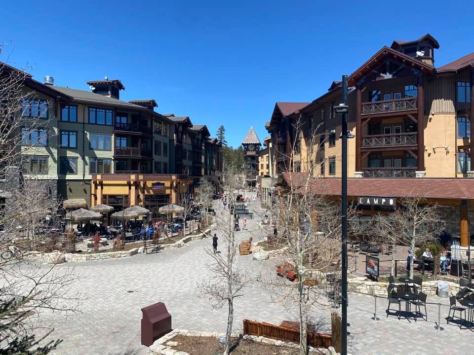 When staying at Mammoth Mountain Inn you don’t need to go far for apre-ski since upstairs is the Mountainside Bar and Grill with an A-frame structure perfectly framing the mountains. Due to COVID, limited capacity is offered daily from 5 – 9 PM. A free nightly shuttle starts at 5 PM for those who wish to head to the village.