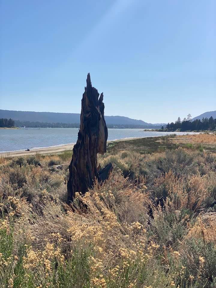Just across the street from this north shore paved path, I found The Woodland Trail, a 1.5-mile loop that starts and ends at the trailhead off Hwy 38. Pick up a pamphlet at the entrance to read and learn about botany, wildlife, and geology at the 16 posted markers along the trail. Leaving my mom to rest, I sped through the dry woods with not another soul in sight admiring the manzanita trees, ancient bristlecones, and stacked boulders. Look for oaks, junipers, the Pinyon Pine or the tough Mahogany “Ironwood.” Once grizzly bears roamed these parts!