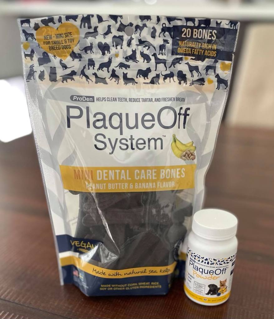 If you’re anything like us, you may have let some of the usual dog hygiene tasks slip during stay-at-home, including teeth brushing. We’re getting back into a routine, but for one of our pups especially, the damage has been done- his smile may be cute, but his breath could clear a room! ProDen’s PlaqueOff is a new product from SwedenCare that is designed to help reduce plaque, prevent tartar, and most importantly, treat bad breath. The active ingredient is a 100% natural algae, harvested in the fresh, cold waters off the Scandinavian coastline, which, when consumed regularly, has been shown to greatly improve oral health. Our dogs have tried two of their products. First is the powder, which is designed to be a daily routine that can be sprinkled on dry or wet food using the included scoop, and is safe for dogs and cats. The pups can be a bit picky, but they had no qualms with this supplement, and we noticed an immediate improvement in their breath. The second product we tried were the dental bones, which are the only chewing bones on the market containing the PlaqueOff system. Their unique shape also helps reduce plaque and tartar and prevent future build-up, and they have Omega fatty acids to support healthy and skin and fur. Our pups loved the mini size in peanut butter and banana flavor- the bones are also available in a standard size and in many other flavors. Also available are the dental bites, which contain the same system and can be used as a small and tasty reward.