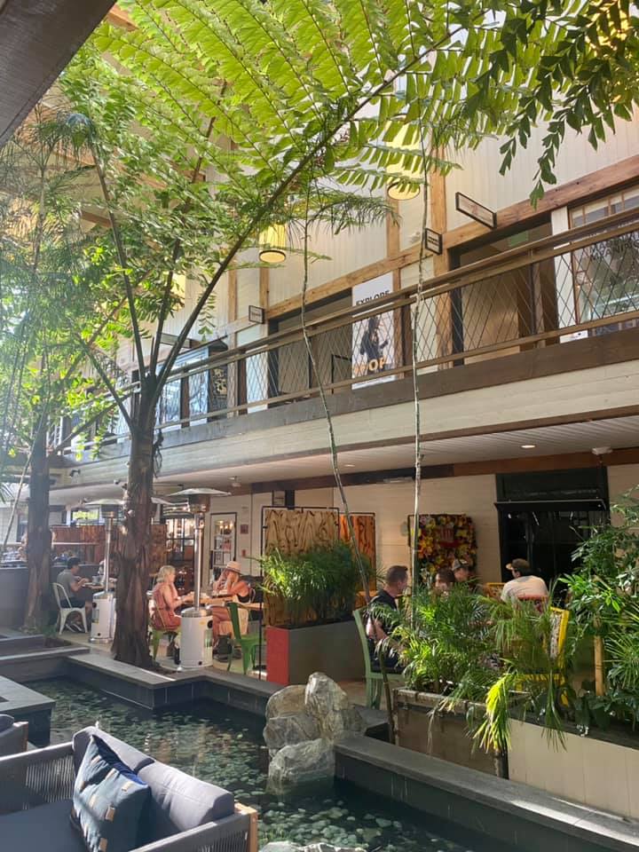 For dessert, order the Vacation ice cream made with banana, coconut, and chocolate swirl on a gluten-free brownie. Dine outside in Agoura Hills in a plant/tree-filled atrium filled with shops and other restaurants. Inside the restaurant is also a small shop with neat culinary products and an impressive bar with a stellar selection of Mezcals. Come for Mezcal Monday flights for $20 and check out their summer of fun daily drink specials. Also, coffees, smoothies, juices, and desserts galore to-go are available from their pastry wing.