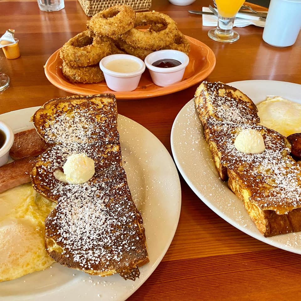Don’t miss their famous bread in the King’s Hawaiian French Toast with fried spam or Portuguese sausage and Oh.M Gee, add the Macadamia Nut Crusted Onion Rings. The dreamy menu will bring you back to the Aloha islands with options like Loco Moco, Kahlua Pork, Lava Bulgogi, Miso Salmon, Chicken Katsu, and Kale Ribs. Mahalo!