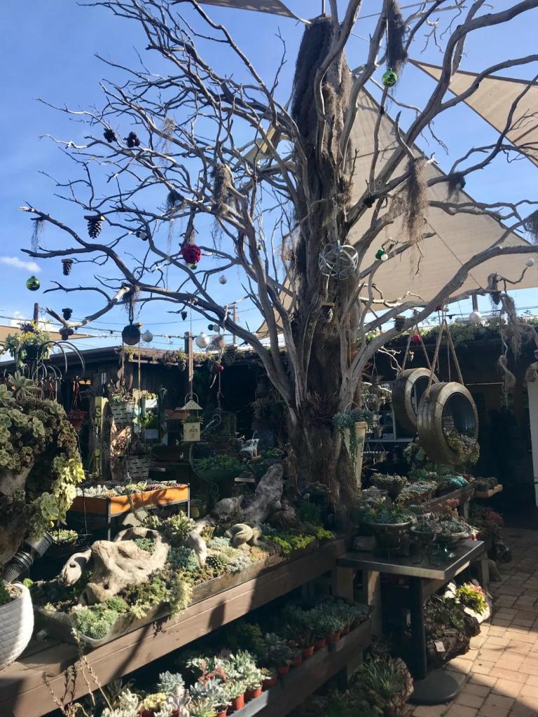 The next morning we headed back to the Carlsbad Village to peruse the town stumbling upon a kitschy art show selling local goods, a flower shop turned Hawaiian goods store, and a beautiful coffee spot dripping with thousands of my favorite little desert plants called the Succulent Café. Besides the amazing coffee (hmmm white chocolate mocha, lavender lattes) and espresso in this peaceful open-air café, walls of succulents hang and embellished wooden holiday Christmas trees, stockings, tires, fountains, and walls.