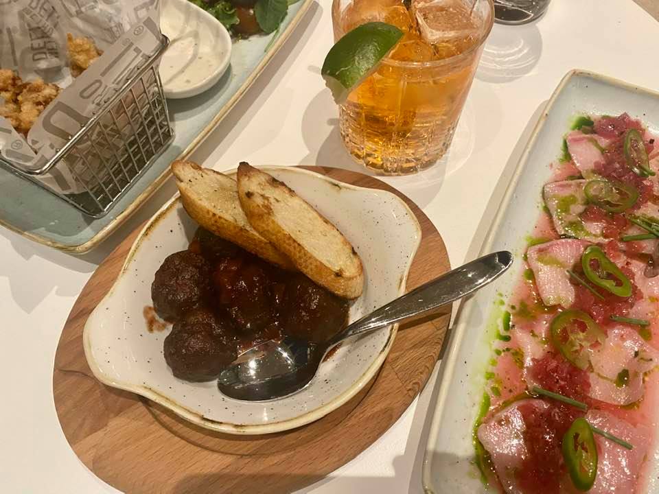 We watched the sunset hues over a Stout aged in Bourbon barrels and a Dark & Stormy paired with a cascade of bites such as yellowtail sashimi, Swedish meatballs, and chicken kaarage.
