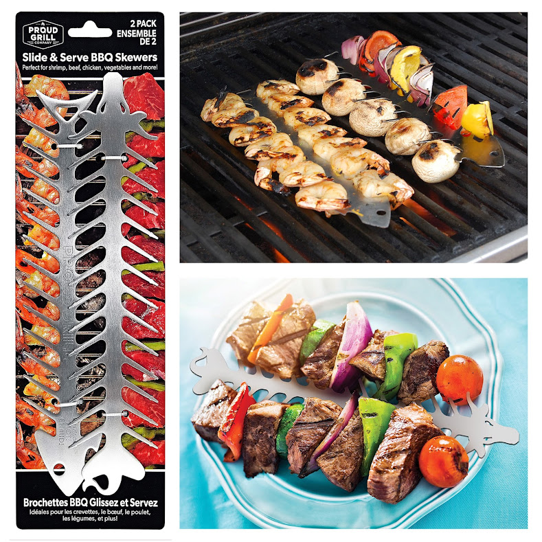 Slide shrimp, meat, or veggies on the sides for easy preparation, impressive display, and popping off the skewer. For the grillmaster in your house, they will love these fun easy to use shish kebob BBQ Skewers that have special tips to prevent them from falling off. Reusable and dishwasher safe, check out the unique head motifs.