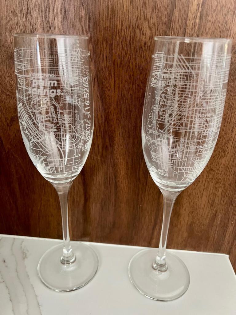 Toast your sweetie with glassware that tells your story. Imprint a town or city map of where you got engaged, fell in love, or live – right on the flutes. Available in EVERY major U.S. city or town and 1000+ iconic Topographic Map locations around the world. An intricately designed map is etched entirely around the glass and extends from top to bottom, achieving a striking effect when the bubbles are inside!
