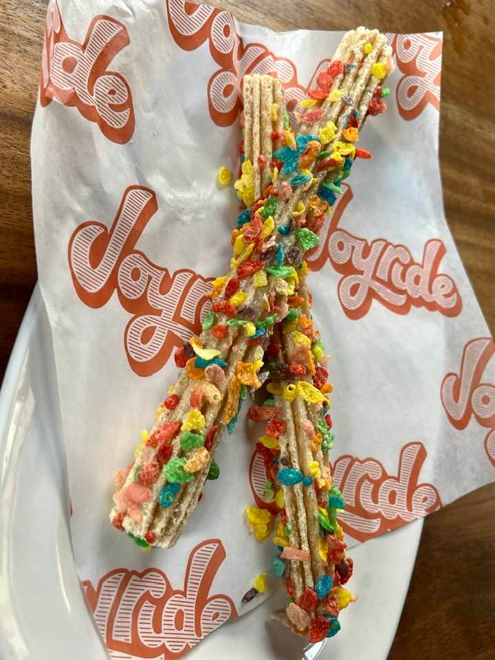 Dive into a fruity pebble Flintstones churro at Joyride Taco House
