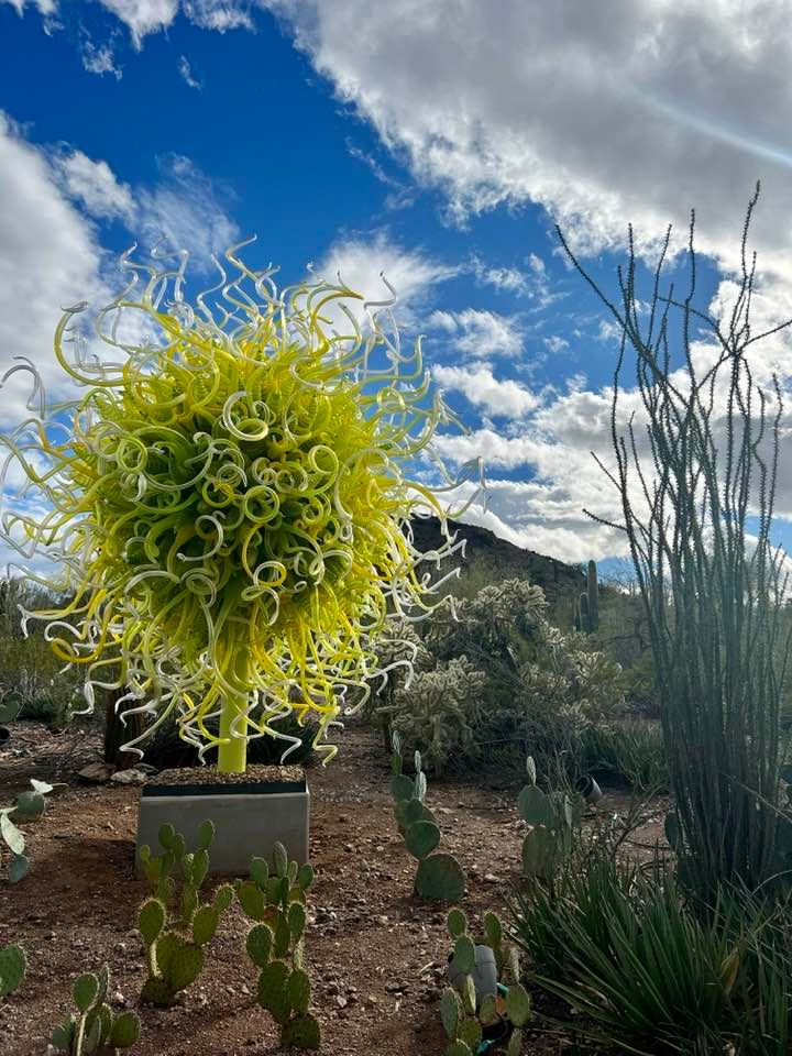 Dine in the desert botanical garden patio after walking around Chihuly in the Desert