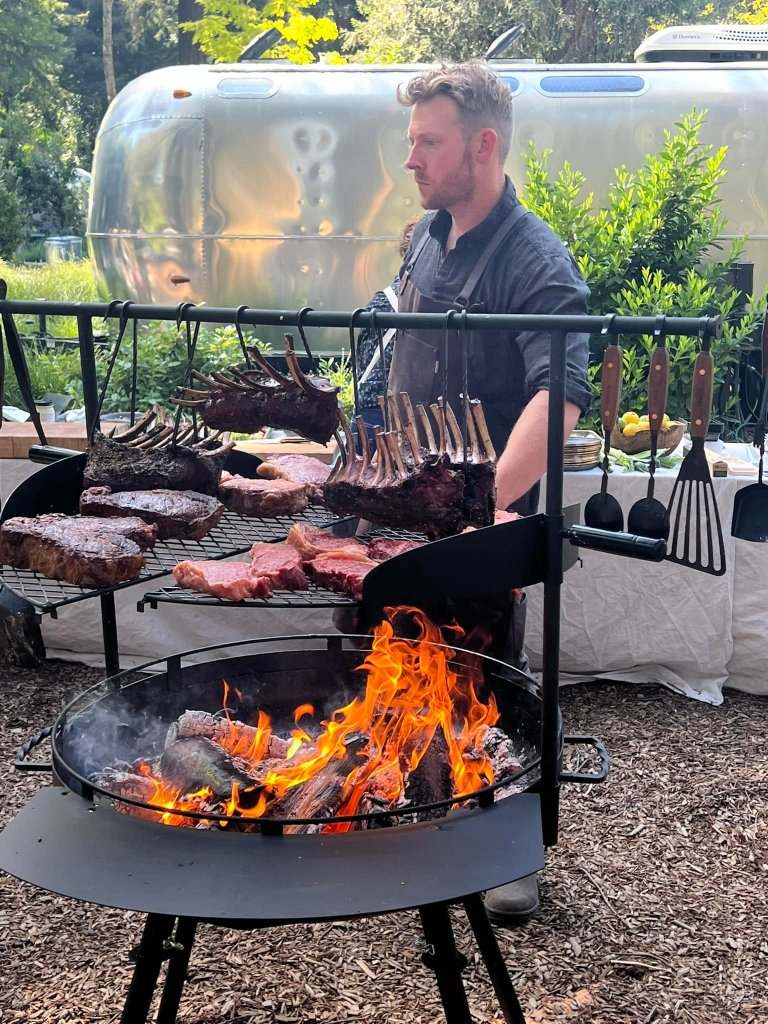 Recently, we were invited to Autocamp in California’s Russian River Valley to experience various cuts of meats over a lengthy 8-hour dinner over an open flame. Chef Kevin O’Connor taught us how to cook the perfect steak – paired with Jordan Wines from Sonoma. We also learned the tremendous benefits of olive oil due to polyphenols and how it’s fallacy to not cook with extra virgin olive oil because it can handle cooking up to 400 degrees. After a festive evening of conversation over venison carpaccio, fire-roasted striploin, spiced rubbed venison, and wild mushrooms followed by tallow beef fudge, our night was complete under the stars with a peaceful sleep in a stylish RV.