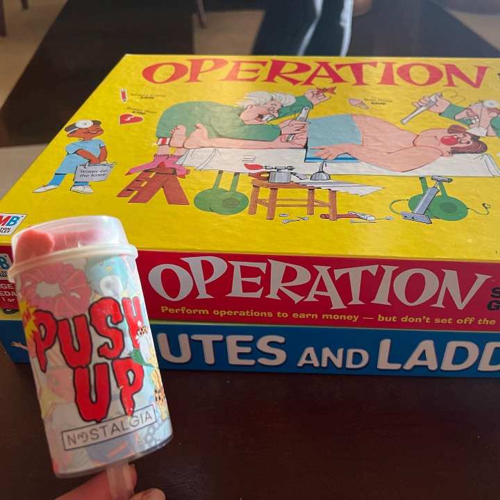 Lounge on the outdoor patio with picnic tables and cheerful colors and lighting. Park yourself on a couch or bar seat surrounded by cartoon favorite fun art like Ren & Stimpy, Johnny Bravo, and Power Puff Girls while a huge mural by Takun Williams (@technodome1) brings back all the memories. Play a round of Operation or Chutes and Ladders, for ole time’s sake.