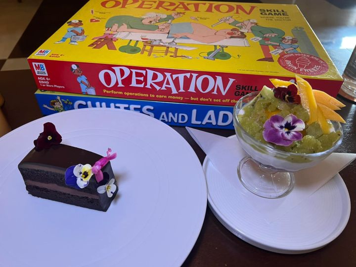 For sweets, delight in a Nostalgic Push Pop stuffed with orange, strawberry, and cherry/beet sherbet or decadent chocolate layered cake lined with espresso cream layers in the Bruce Bogtrotters Comeback, a play on our favorite author Raold Dahl’s Matilda scene where a boy is forced to eat a whole 18-inch chocolate cake in front of the entire school after stealing a slice from Miss Trunchbull.