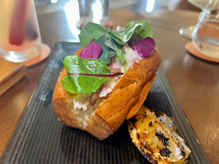 This Connecticut girl loves lobster rolls. LA is always doing a different take than what we grew up with at seaside lobster shacks. This Lobster Roll bite is packed with poached fresh lobster and herb aioli and is full-on elevated with a lobster shell caramel (made from the crushed shells – whoah!) and served on a brioche roll. For an extra $10, add Kulaga Caviar.