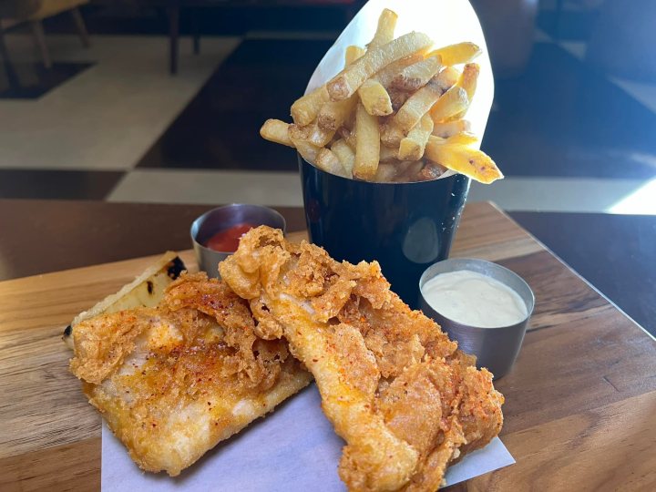 High on your ordering list at Nostalgia Bar and Lounge should be the light crispy flakey Branzino Fish and Chips with house-made tartar, because you may shed a tear it is that good!