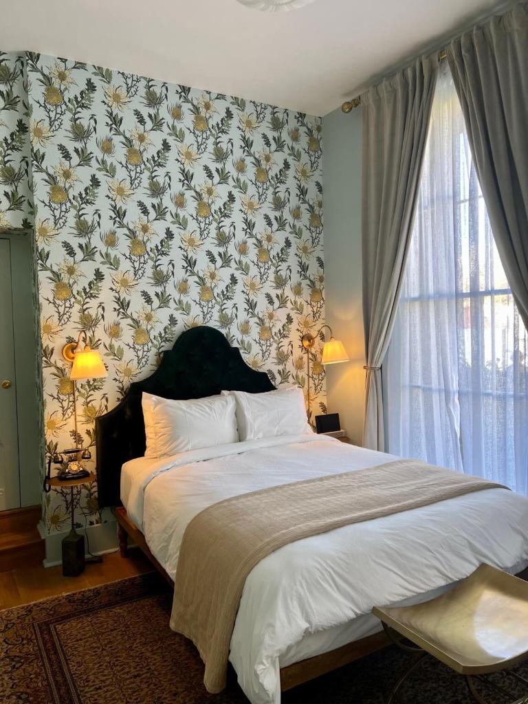 Rooms feel comfy chic like staying at your expertly designed aunt’s home with deep green velvet headboards, mustard yellow, and thistle William Morris wallpaper prints, and carefully selected décor items like a vintage telephone, unique furniture, and old-school sconce lighting. My room had access through a window to a balcony above Broad Street and the former mining town. There’s no need for a TV as the room’s character and charm exudes rest and connection, with plush bedding and an electric kettle for coffee and tea.