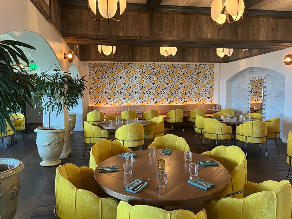 For dinner, the property also boasts another beauty called Costa Kitchen & Bar where you can sit outside across from the ocean with a cocktail before entering the cheerful space with lemon wallpaper, olive trees, plush yellow dining chairs, and rich leather banquettes. For sophisticated taste buds, spend a leisurely evening over whole roasted branzino with salsa verde, squid ink linguine with clams, snow peas, and uni butter sauce, and central coast crab with flavor bursts of sweet and spicy. Toast the good life with a local wine or a ‘Gucci’ Old Fashioned paired with California olive oil cake doused in whipped cream and slices of fruit.