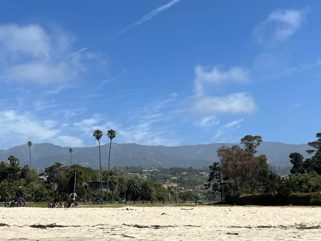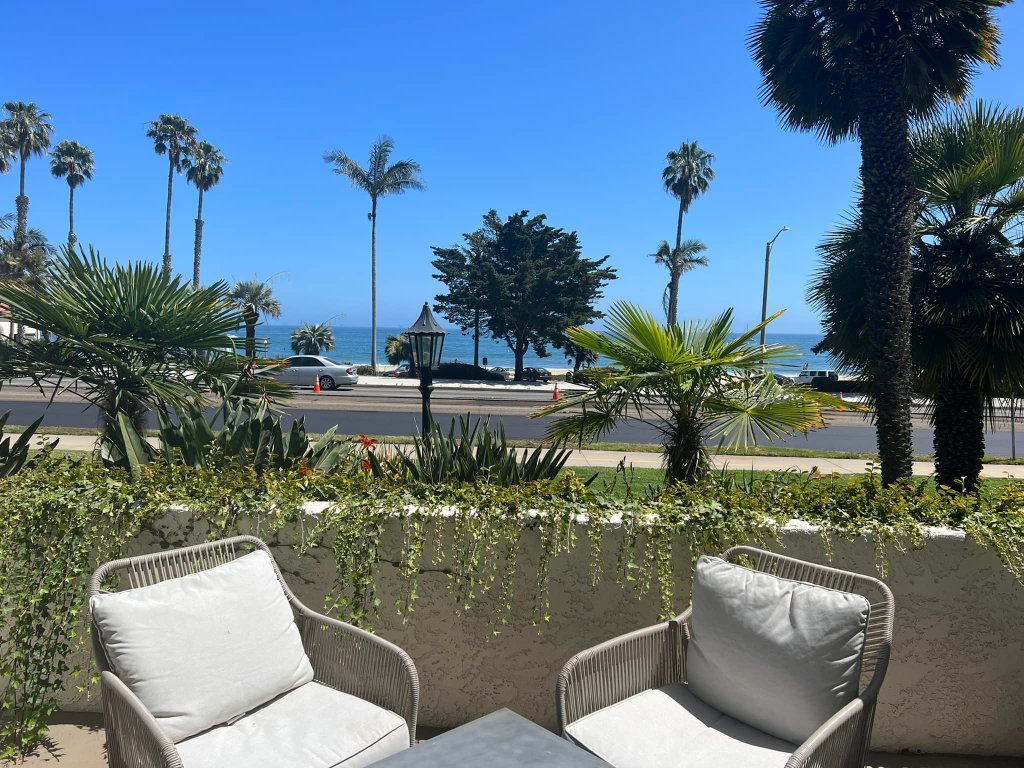 Most rooms come with oceanfront terraces or balconies – perfect for morning coffee, a workspace, sunset wine, or just to feel the salty air. One morning I biked to the historic Stearns Wharf (where I later found Deep Sea Winery Tasting Room high above the pier) and another morning I crossed the street to East Beach to put my feet in the sand and walk a few minutes towards cliff-laden picturesque Butterfly Beach where Santa Barbara joins Montecito. I had the whole beach to myself – minus someone waking up in their tent or walking their dog.