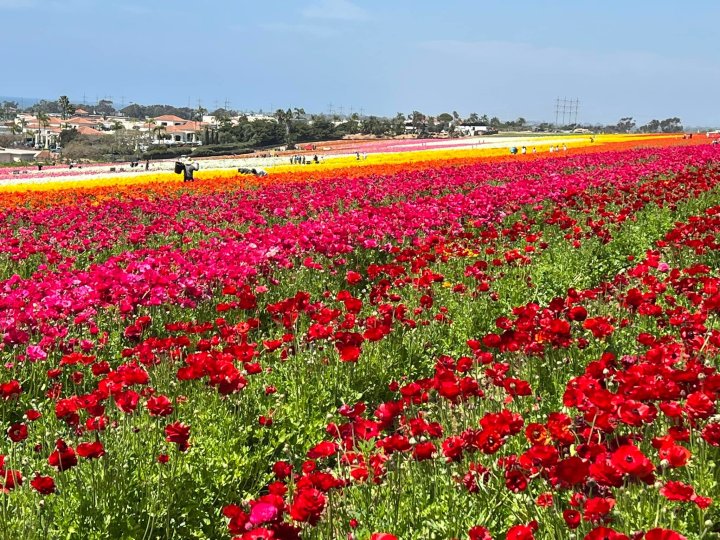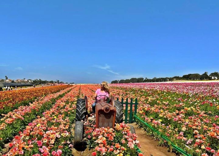 Carlsbad drew us back again this spring for the annual Flower Fields exhibition that occurs from early March through early May. Over 50 acres at Carlsbad Ranch have transformed into a sea of vivid colors thanks to skilled farmers keeping the ground perfectly irrigated for 30 days. They create sixteen hues of papery ranunculus flowers. Once upon a time, these same hills grew poinsettias for the Ecke family who sold them as cut flowers and later grew them in pots using a photosynthetic trick to make them bloom in time for Christmas – creating the traditional Christmas flower that is now ubiquitous in the US. See a greenhouse filled with many varieties of poinsettia, but not before posing for a photo on a tractor or oversized chair in the blooming flower fields with your loved one.