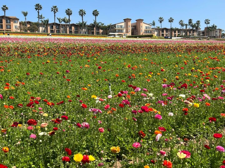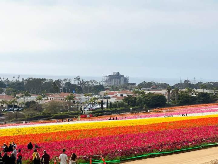 The Cassara Carlsbad, part of the Tapestry Collection by Hilton, is the perfect place to stay when visiting the seasonal Flower Fields because you can literally walk down the road to the entrance or view the bright rows of ranunculus flowers from the well-heated ‘quiet’ hotel pool. Nestled in 12 lush acres over the Pacific Ocean, our room sat above the field designed like an American flag, with the ocean in the distance. Rooms have been renovated to reflect modern clean lines while the lobby has been redesigned with mid-century modern furnishings. Recently, the hotel unveiled 29 two-bedroom Karlsbad Family Suites for guests to enjoy with loved ones when they need time away from home. A complimentary shuttle can take guests within a 5-mile radius as well as Carlsbad’s one-of-a-kind Ride the Tide open-air beach trolley with daily service to Tamarack Beach.