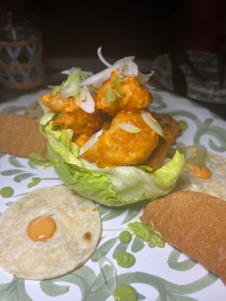 MUST ORDER: The Crispy Rock Shrimp tastes like big fresh lobster chunks and arrives in a grand lettuce cup. Share the generously sized dish by placing the luscious shrimp into hard taco shells or mini tortilla shells with dots of wasabi quac puree and chipotle cream.
