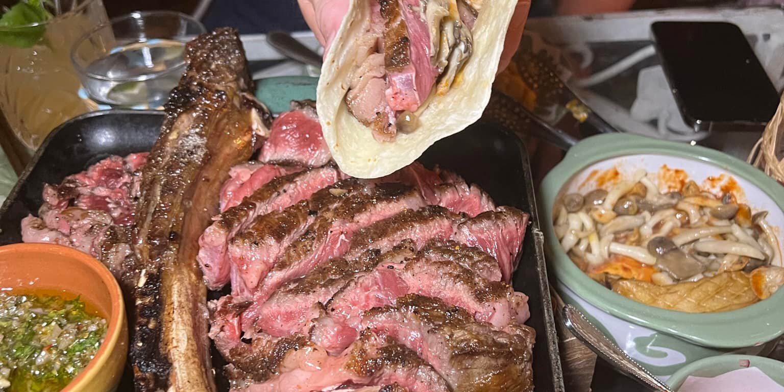 Add Grilled Corn with smoked cotija cheese and Roasted Wild Mushrooms as a side to accompany your meat. The Tomahawk feeds 3-4 people or consider taking home what you can’t eat. Other dishes prepared tableside include a 12 oz New York Wagyu, a 36-hour Brisket Birria, and a 2 lb grilled Maine lobster with roasted black garlic steak sauce.