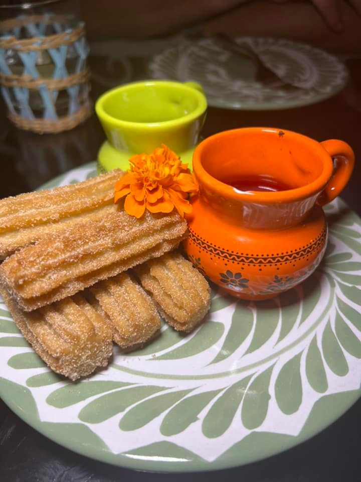 DESSERT: Of course, churros! But these are freshly made hot and crispy with two dipping sauces – chocolate and strawberry. Oooooh! AH!