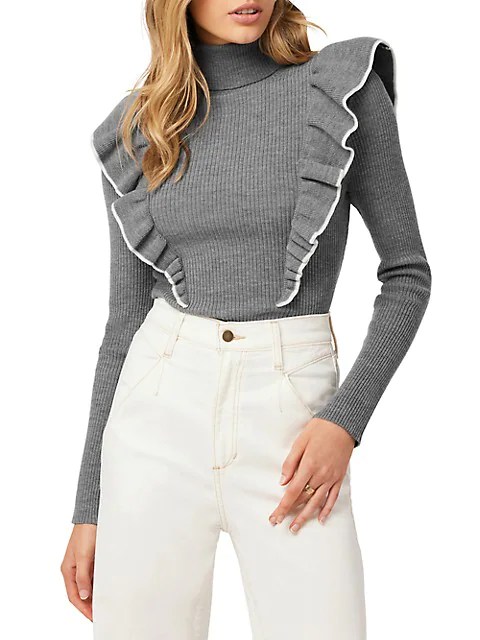 My favorite piece was the soft HEATHER SWEATER (a cozy ribbed turtle neck top) and the RIDER SWEATER DRESS, an A-line tea-length dress, both fashioned with ruffles & contrast color tipping details. I’ve always been a big believer in turtle necks since they are slimming, classy, and trés chic.