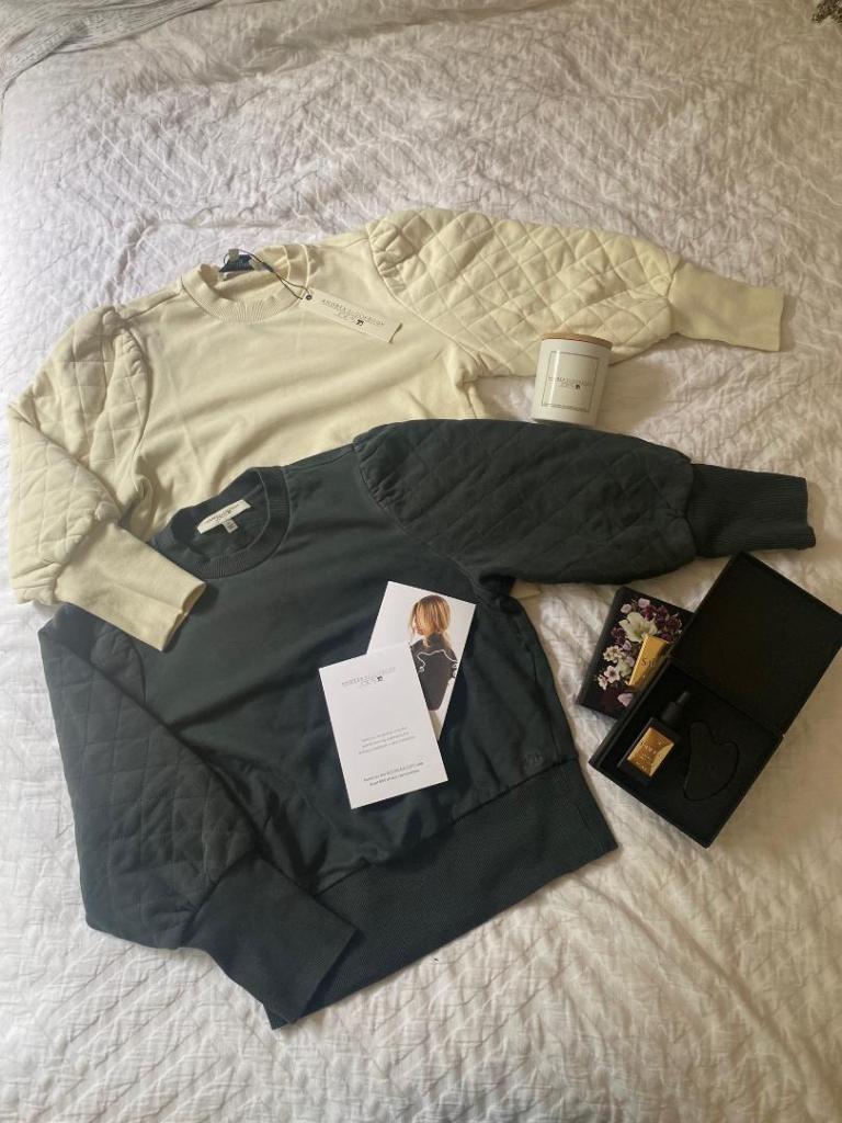 Lisa, the Senior Denim Designer at Joe’s Jeans, gave us the “Insider Scoop” describing the styles on display. The ANDREA SKINNY is a high-rise jean in washed denim (an all-time classic) that was styled with the DREW SWEATSHIRT with quilted sleeves and high rib details on the cuffs and hem. All attendees were gifted a fabulous gif bag including the DREW SWEATSHIRT that comes in dark grey, cream, and more.