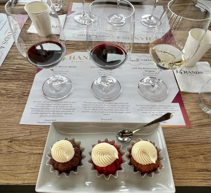 While we had a hard time deciding if we liked the 14 Hands Reserve Merlot ($40) from Horse Heaven Hills or the 14 Hands 2019 Reserve Cabernet Sauvignon ($40) better, try them all with their wine and cake pairing – where our favorite Nothing Bundt Cakes are matched with 3 winery-exclusive Reserve wines. Dubbed “Bundt Bites and Wine Flights,” the big fruit-forward reds are extraordinary but don’t miss the crisp juicy whites and bubbly rose.