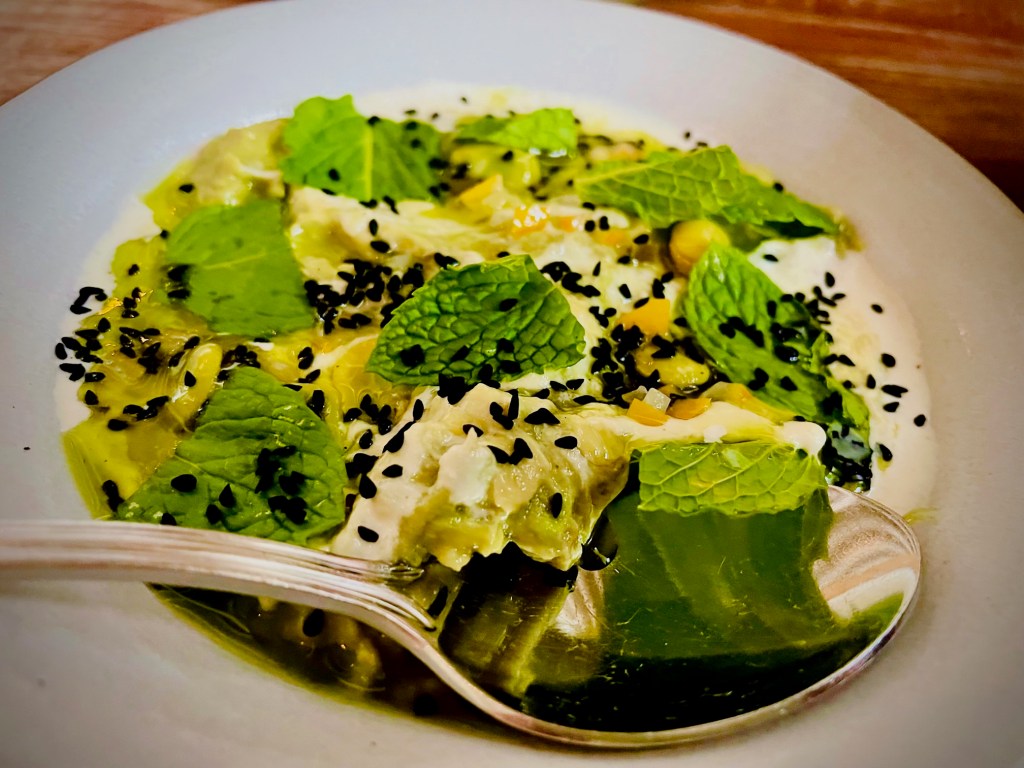 From an avocado-infused hummus topped with mint leaves to a beet carpaccio with raspberries and pistachios, the chef makes full use of texture and color to create Instagram-worthy dishes that look almost as delicious as they taste.