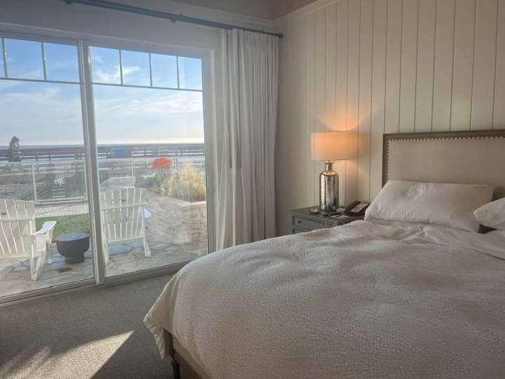 Choose from room options like a breezy ocean view or boardwalk suite with high ceilings, expansive windows, and a crisp white coastal vibe. Most of the 124 guestrooms come with private balconies overlooking the Pacific Ocean. Bathrooms are donned with Carrara marble and white subway tiles.