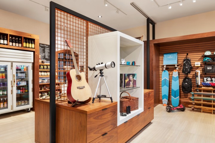 This “playground” offers an expansive pool, tennis (soon pickleball) and basketball courts, daily activities like yoga, and a game room filled with foosball, TVs, and more. As part of the resort fee, guests choose from an on-site rental shop filled with activities that can be used (free) for two hours a day like boogie boards, surfboards, skateboards, tennis rackets, record players, Go Pros, and beach chairs.
