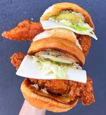 Order a chicken sandwich combo of your choice and select your spice level. We like the Spicy Hot Chicken Sandwich Combo with 3 spicy hot chicken tender pieces + seasoned crinkles fries + sauces + pickles + a drink. Don’t miss out on the Ube cheesecake.