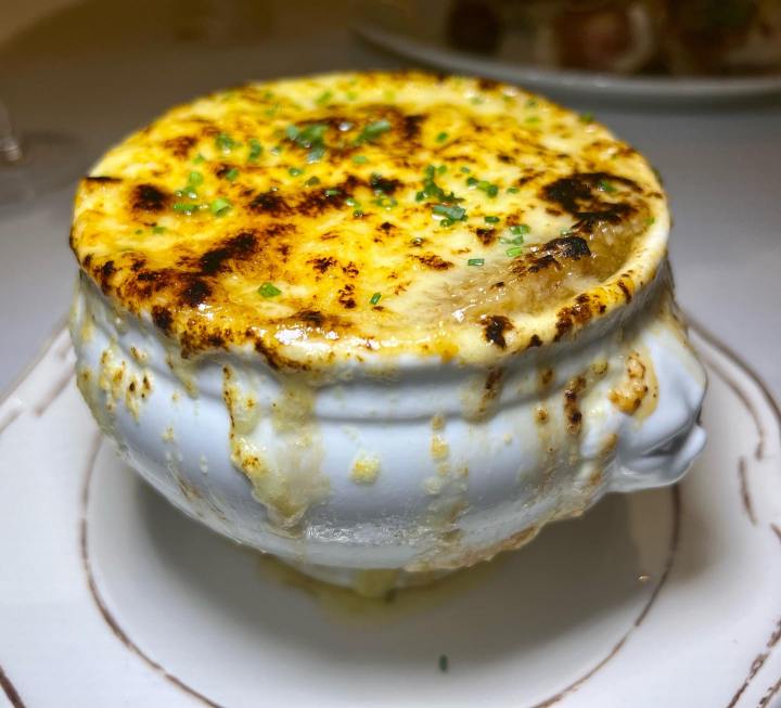Classic French onion soup is a memorable affair here as this hefty beef consommé portion is super filling and oh so satisfying with its sizzling gruyere cheese top that it could be a meal in itself.