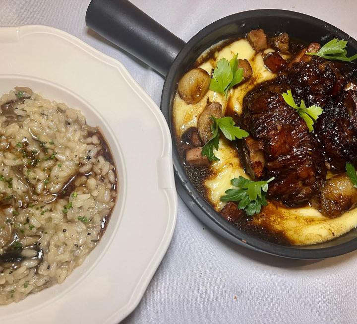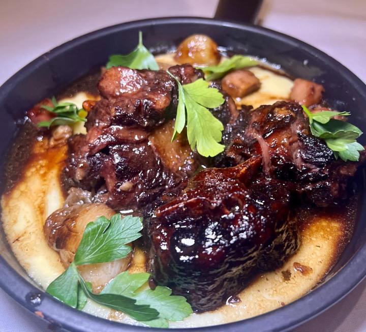 Standout entree options include the Wild Mushroom and Black Truffle Risotto blended with parmesan and bordelaise and the beautifully executed Beef Oxtail Bourguignon that arrives in a skillet atop mashed potatoes, bacon, mushroom, and burgundy red wine sauce. Oh la la rich!