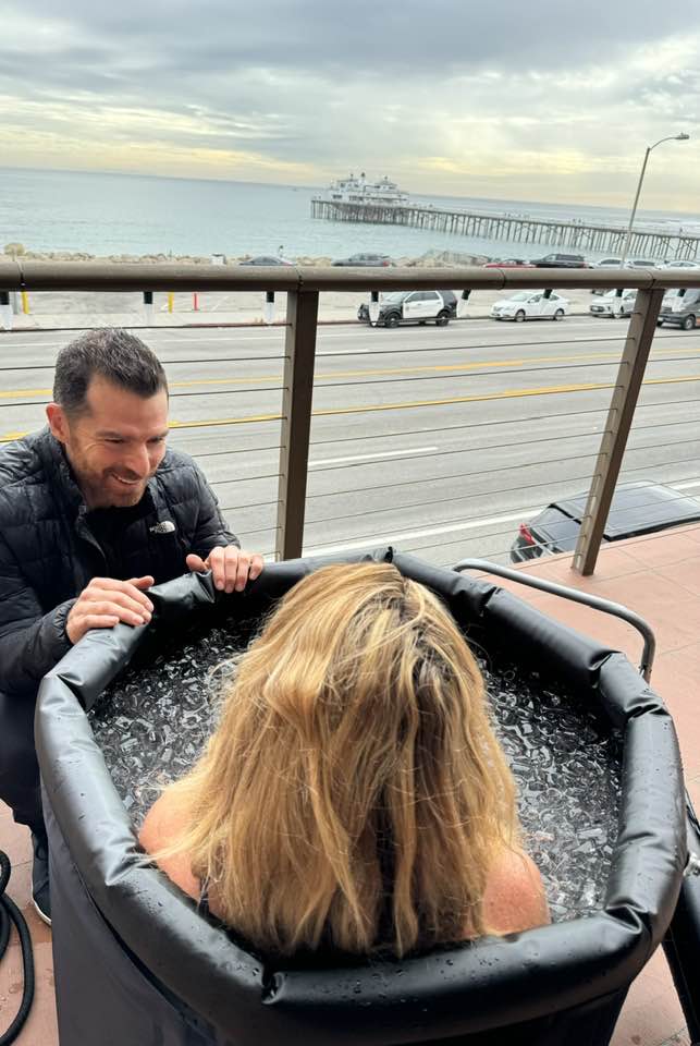 Jared trained our group in Wim Hof breathing methods and body movements before we slid into an icy bucket of water on the terrace overlooking the Malibu Pier and ocean. Mind over matter, Jared coached us through the polar plunge. But don’t worry, the steam room and red-light therapy sauna at CURE are just a few feet away.