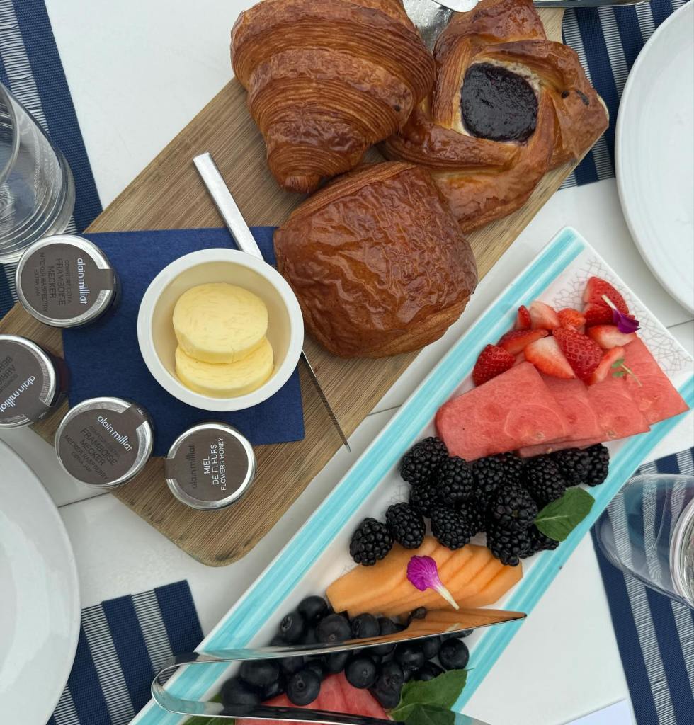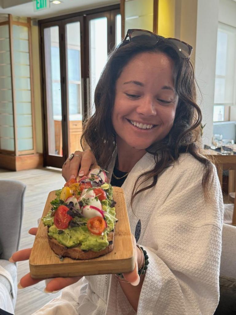 Super satisfying is one way to describe the meals at Carbon Beach Club, as most ingredients are sourced locally from One Gun Ranch and resident farmers markets. Dining here never disappoints as impressive ocean views to the end of the world abound inside and out. Breakfast begins each morning after yoga with fresh fruit and pastries from Gjusta (they do let you splurge a bit on this wellness retreat). Amazing coffee and fresh juice shots are presented as well as options like granola and yogurt with berries, Tostadas with chickpeas, avocado, and sunny side up egg, and my personal favorite, asparagus with poached egg and prosciutto.