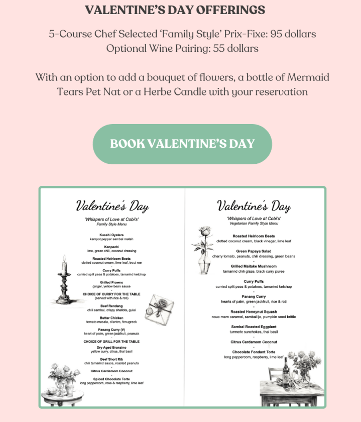 Find a vibe, a menu, and a price point that’s right for you and your loved one.