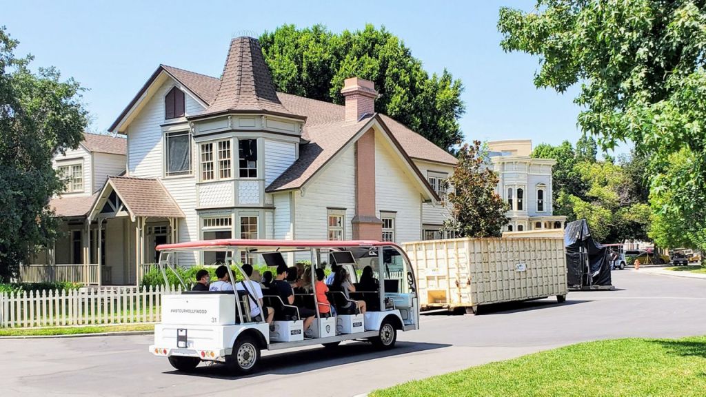 The first hour of the guided tour is on an oversized golf cart where guests cruise past the famous Warner Brothers water tower and get to know former film and TV sets made to look like Asia, NYC, Philadelphia, and New York City. Popular sets from legendary TV and movie scenes are all right here in Burbank, California. As we breezed by the sound stages I noticed signs for Gilmore Girls and the Jennifer Hudson show, and watched a slew of adorable kids (all extras) preparing for a scene in the Netflix series Abbott Elementary.