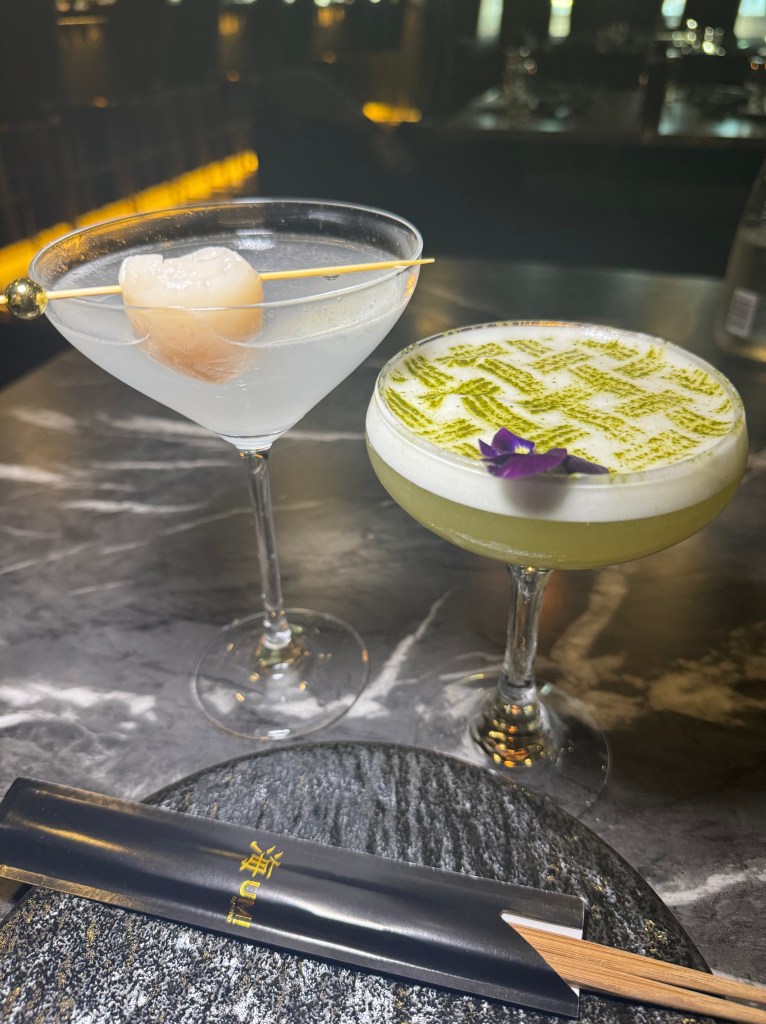A dessert surprise concludes the extravagant evening, as a chocolate dome is melted with liquid hot chocolate before our very eyes to reveal ice cream and brownie – all perfectly paired with an Espresso Martini, donned in a checkerboard top and gold foil, as sexy as this UMI venue.