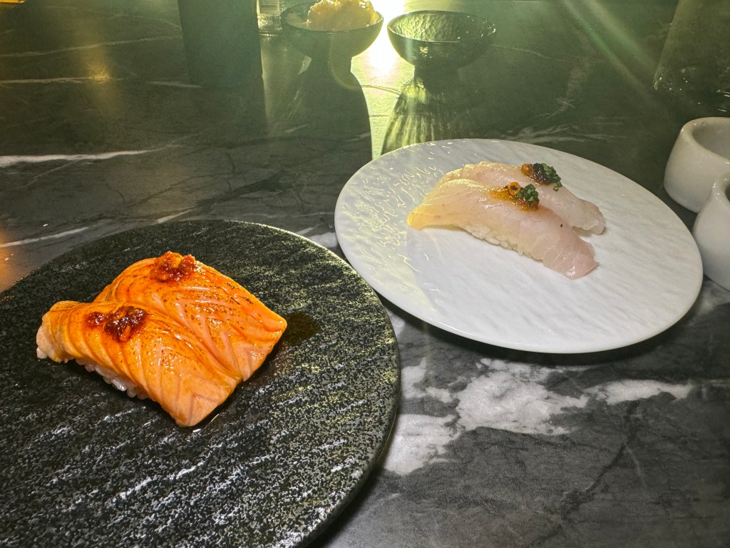 The Lemon Roll dispersed with Spanish bluefin tuna, avocado, lemon, puffed amaranth – accompanied by a couple signature rolls – may be all you need for a light but fulfilling bite.