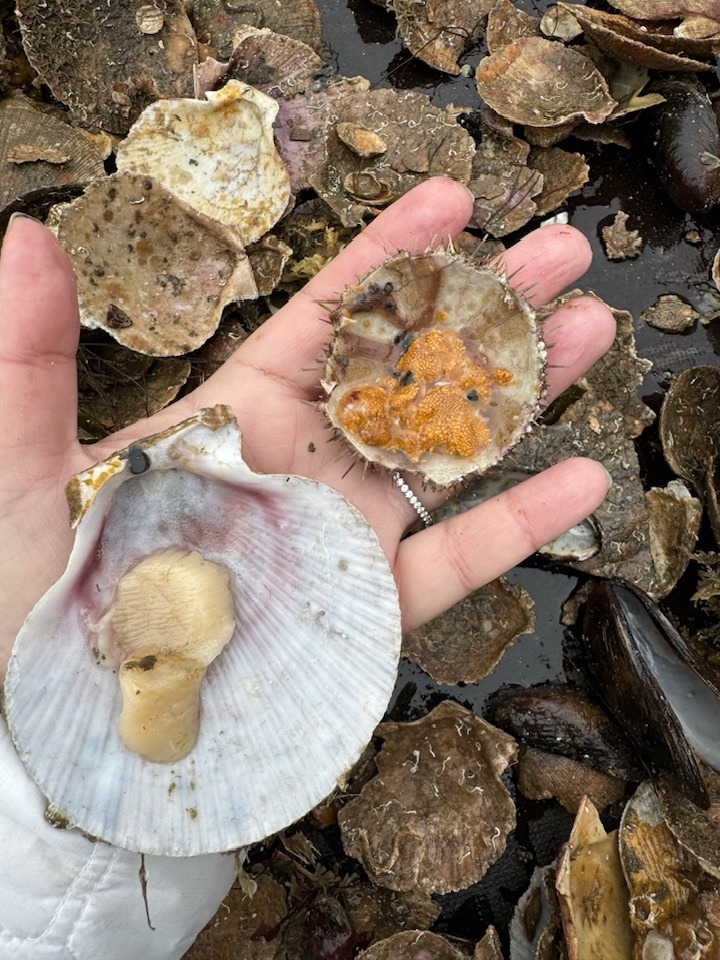 - Slurping down fresh scallops and sea urchin right from the net dragged in back of the boat off Grundarfjordur.