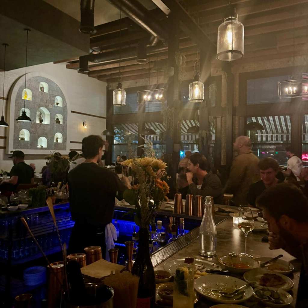 Sidle up to the bar to sip a pre-dinner cocktail, unique beers, or one of their natural wines on draft. We suggest the TURKISH VILLAGE made with tequila, italicus, mastiha, preserved lemons, and cardamom bitters.