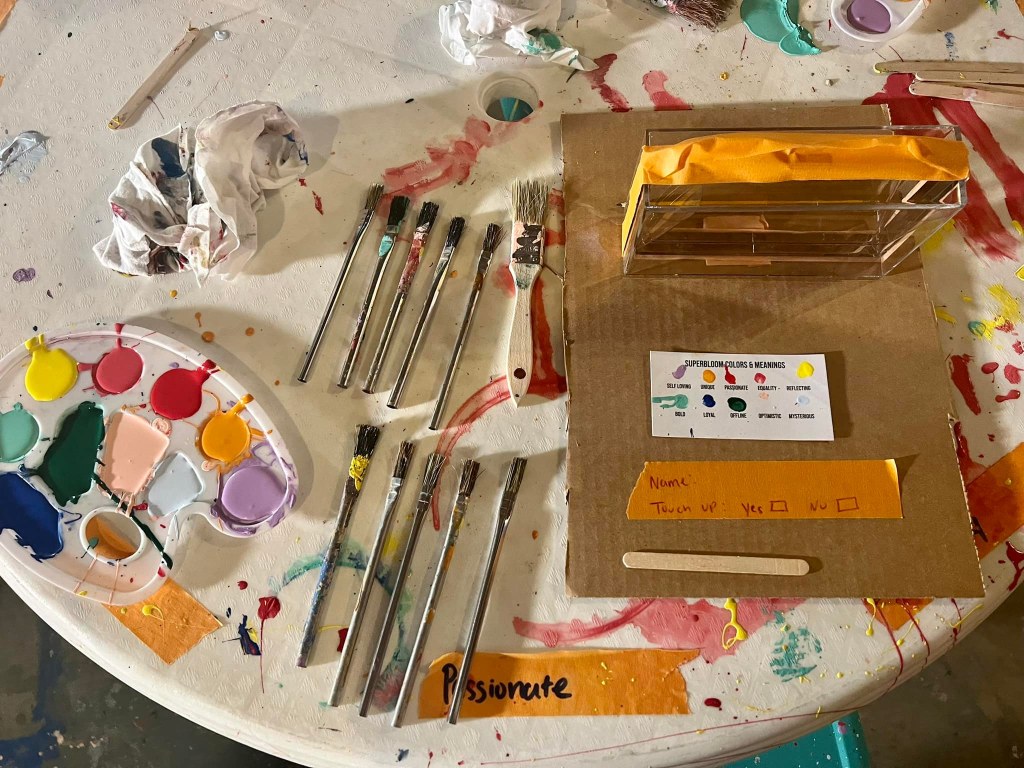 Paint with Meaning at Superbloom, where a pre-selected palette of colors (all with a special meaning) can be selected at their new studio for guests to design their own items like shoes, an iPhone case, handbag, hat and more. This one-of-a-kind paint splatter is a fun way to upcycle old clothes and personalize your fashion.