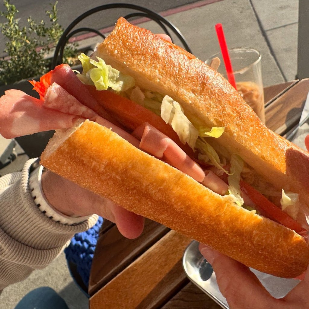 By far, Haute Mess makes the best sandwiches we have recently devoured in Los Angeles. Located on Beverly Blvd right across from Erewhon, this European-esque market and cafe is a one stop shop that not only sells coffees and teas, pressed juice, homemade lemonade and cold teas, but also sells homemade gelato in the back (on cones or to-go in containers), pastries and desserts (like Paris), and numerous cheeses and charcuterie. Plus, there are over 500 delicious wines to pair with.