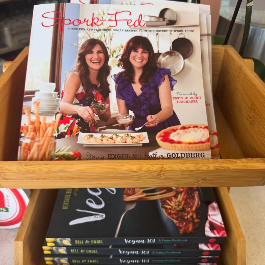 Founders and sisters, Heather Golden Ray and Jenny Engel, owned a vegan cooking school, wrote two cookbooks, and founded Spork Foods. Learn about their pollinator program in the cafe. Non-GMO and organic ingredients are used whenever possible. Catering is offered too.