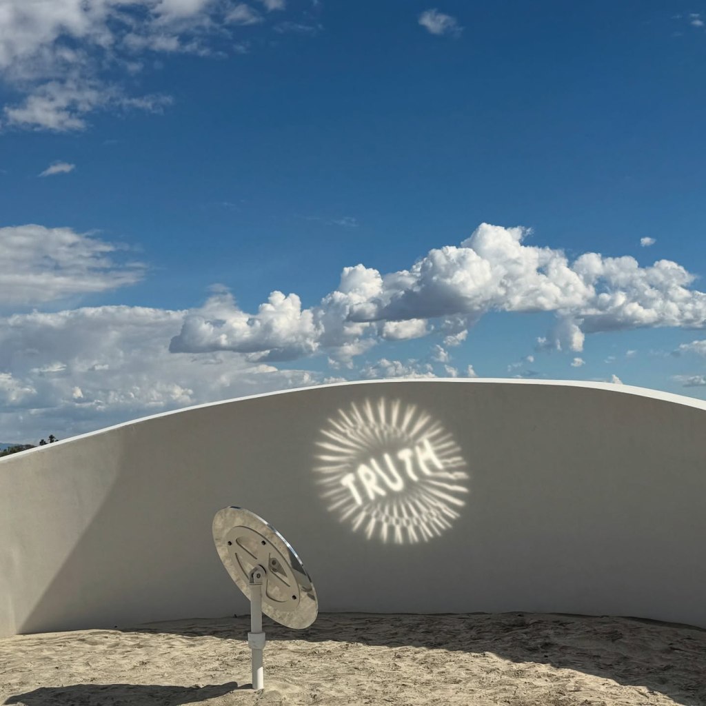 At the media preview, we listened to numerous remarks from Supervisor V. Manuel Perez: “Hope is though art. Many here in the Coachella Valley may not have money to go to a fancy museum. The studio is the desert. Land art. It is a means to grow internally. No social boundaries, not even a border. Anyone can go to Desert X. Voices and struggles are finally being heard through art.”