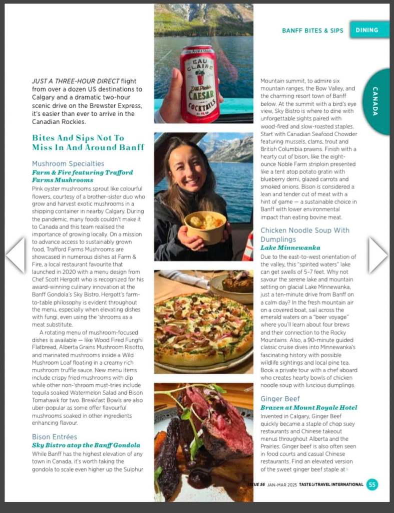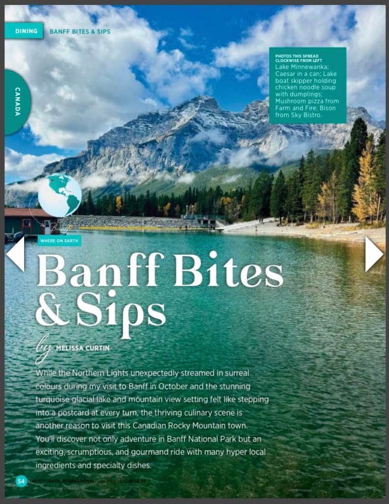 The article Banff Bites and Sips was first published in Taste and Travel Magazine in the Jan. – March 2025 issue (Pages 54-57).